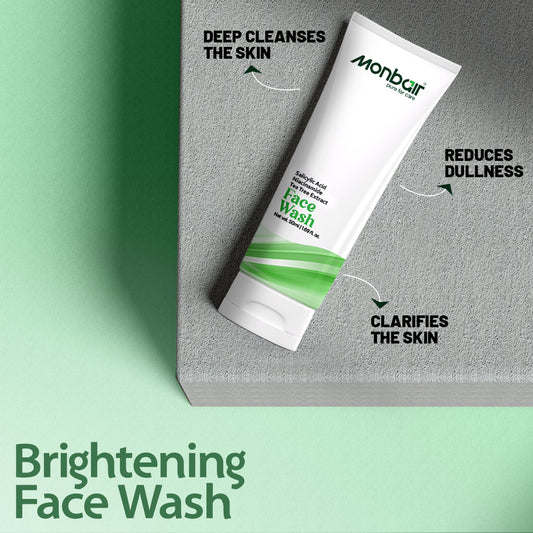 Monbair Radiant Clear Face Wash with 2% Salicylic Acid For Oily Skin | Sulphate free, Anti Acne Face Cleanser With LHA & Zinc For Acne or Pimples | For Women & Men | 100 ml